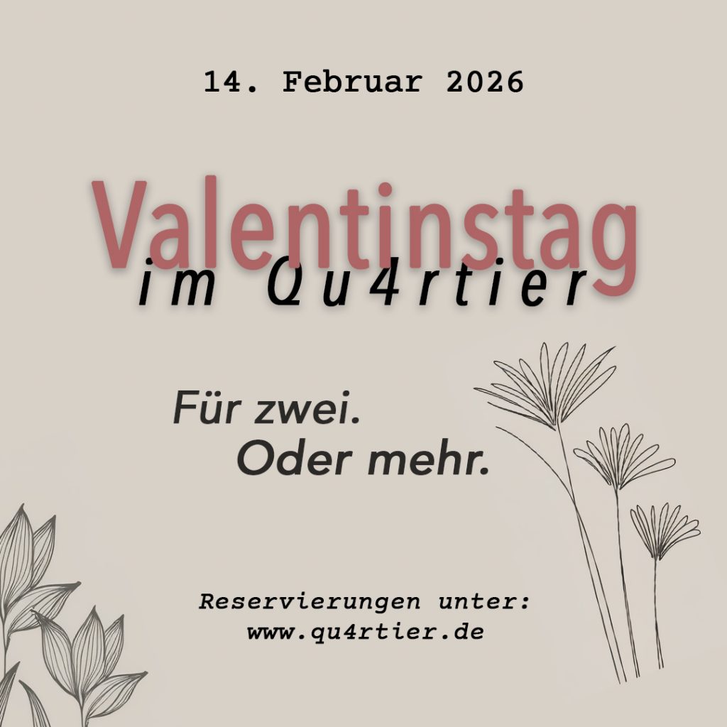 Wir freuen uns schon jetzt darauf, euch bei uns im QU4RTIER begrüßen zu dürfen.